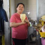 跟著卜雅菡的腳步看到旁邊的一桶白色的液體,卜雅菡介紹,「這是用來黏貼的,是用麵粉製作的,紙神像的黏著劑一定要是純天然的,不能用人工合成的膠水,那麽第三個因素就是顔料,我們的顔料就是使用國畫顔料,一定要礦物性顔料,一般的顔料曬幾天就變色了,而我們的就不會」。