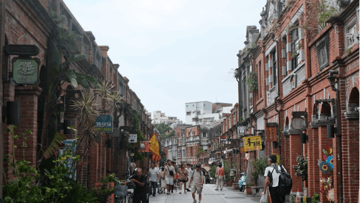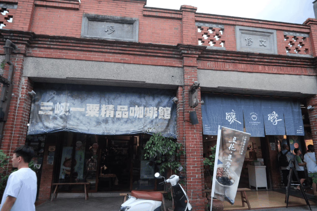漫步在全長不到三百公尺的三峽老街,抬頭可見一棟棟帶有牌樓的紅磚建築。一百多年前文獻記載,三峽曾有超過二十家染坊林立,清朝時期的染布品質優良,銷售遍及全台甚至外銷海外。仔細觀察每棟建築都是巴洛克風格的西式裝飾,訴說著當時的繁榮,也印證染業與國際的交流往來。老街上那條看似突兀的鐵軌曾是人力車運送原料與布料的通道,將山區的半成品送往老街加工,再轉運至大稻埕販售。