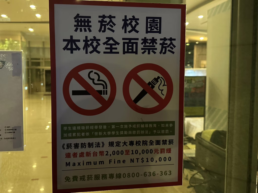 世新大學教師陳志偉表示,下班時間常有學生群聚在巷口吸菸,菸味飄入辦公室,顯示現行禁菸宣導多為治標不治本。他坦言校方難以全面防治,雖然定期開設宣導講座與提供戒菸協助,但對於不吸菸師生的空氣品質保障,校方仍面臨兩難。 他提到,目前學校以發放菸袋,來嘗試防止菸蒂造成的環境汙染問題。